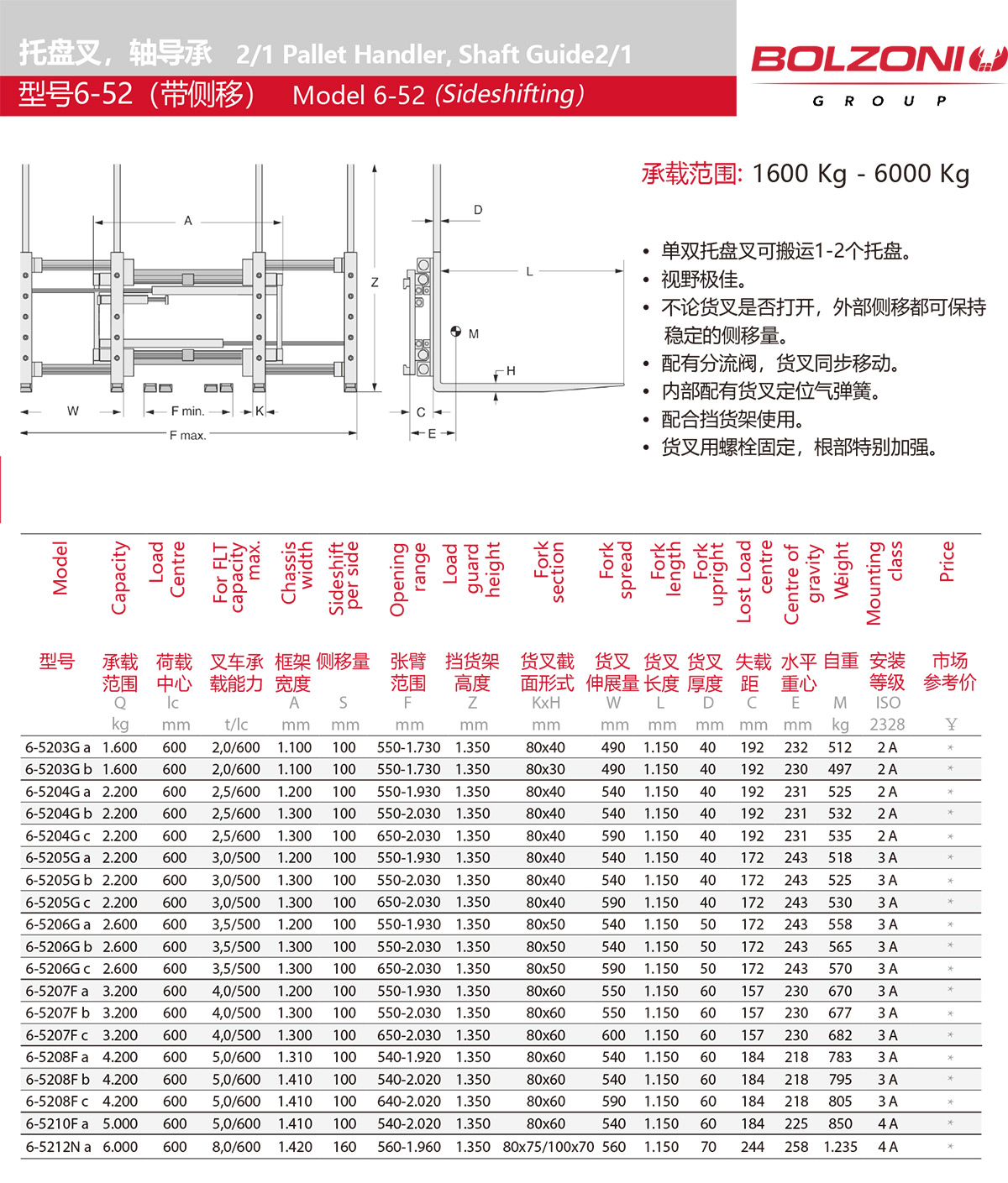 博索尼:6-52带侧移双托盘叉