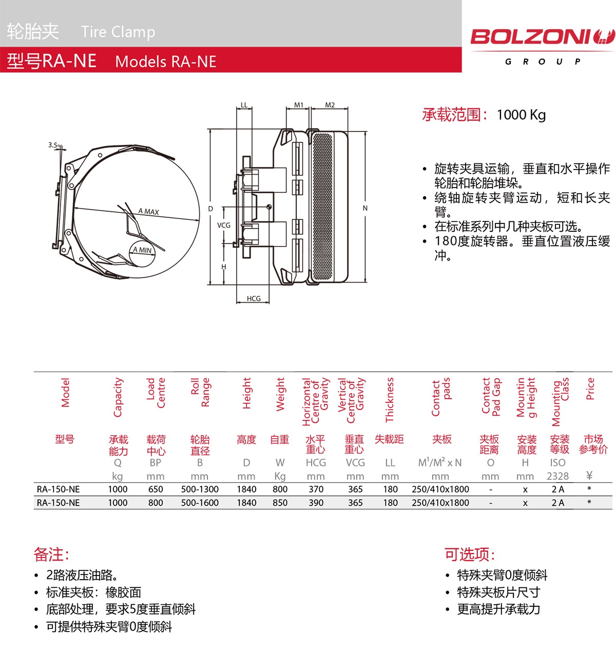 博索尼:轮胎夹RA-NE型号