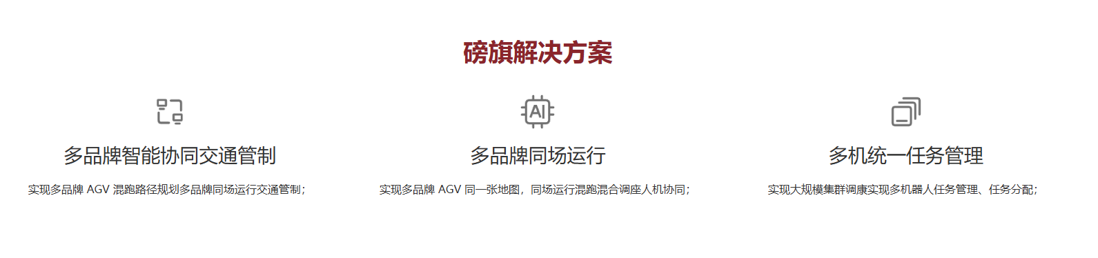 磅旗科技多品牌机器人混合调度系统ADS是多厂商,多品牌,多型号机器人混合调度系统,通过使用先进的AGV智能调度控制算法,结合智能工厂、智能物流具体的应用场景,实现多品牌AGV/AMR同场作业、同一张地图混跑,高效路径规划、高效交通管制,让不同设备/系统间有了共同的平台语言。