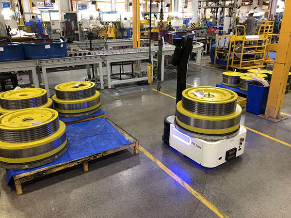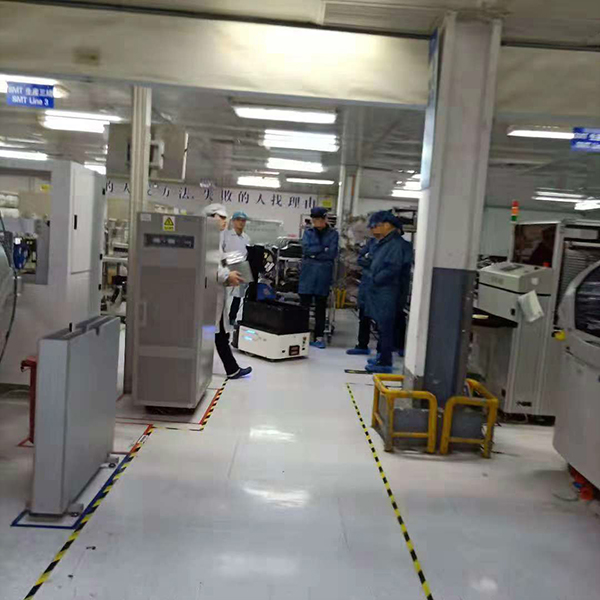 考察组先后参观了我司多个已经投入使用的物流机器人应用现场,无论是在非常空阔的重型机械制造产线还是在比较拥挤的SMT线,机器人在通道两侧经常变化的情况下,不用任何标记,可以流畅行走,完成各种任务。考察组成员被蓝芯科技的无标记导航物流机器人的技术领先性和使用灵活性所深深吸引。
