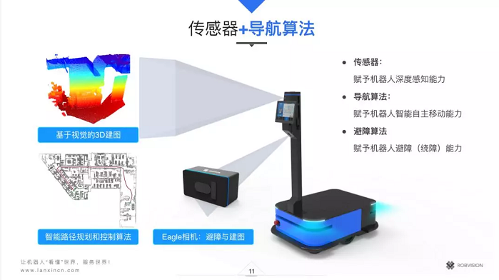 蓝芯科技团队核心成员均有多年人工智能产业化经验,公司成立伊始,就把计算机视觉作为公司的核心技术,把“让机器人‘看懂’世界,服务世界”当作公司的使命。为了更好地验证和夯实技术,他们将物流机器人产品作为技术的载体,推出了视觉导航系统(均采用自研3D视觉传感器和自研算法),还面向电商仓储和智能制造推出移动机器人整机产品。