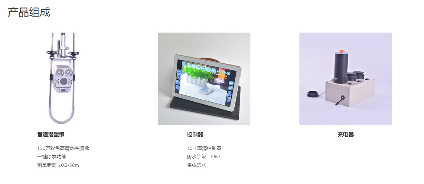 在检测过程中,客户可以选择采用有线或无线的方式将视频信号、缺陷位置信号传输到手持式控制控制终端上。客户可以通过触摸屏上的虚拟按钮,控制机头的俯仰,从而获得管道缺陷位置处的清晰图像信息;同时可以对缺陷进行编码和文字描述,并叠加字符到录制的视频文件中。