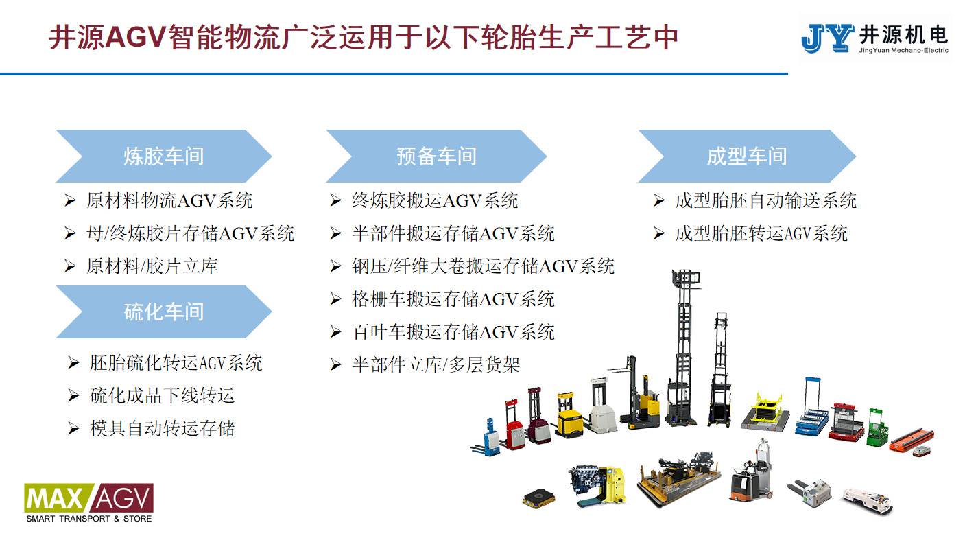 前面,我们介绍了井源机电AGV在汽车行业及工程机械行业中运用的特点展示,今天也从轮胎行业的角度,给大家介绍一下,井源机电AGV的优势体现在哪里:
