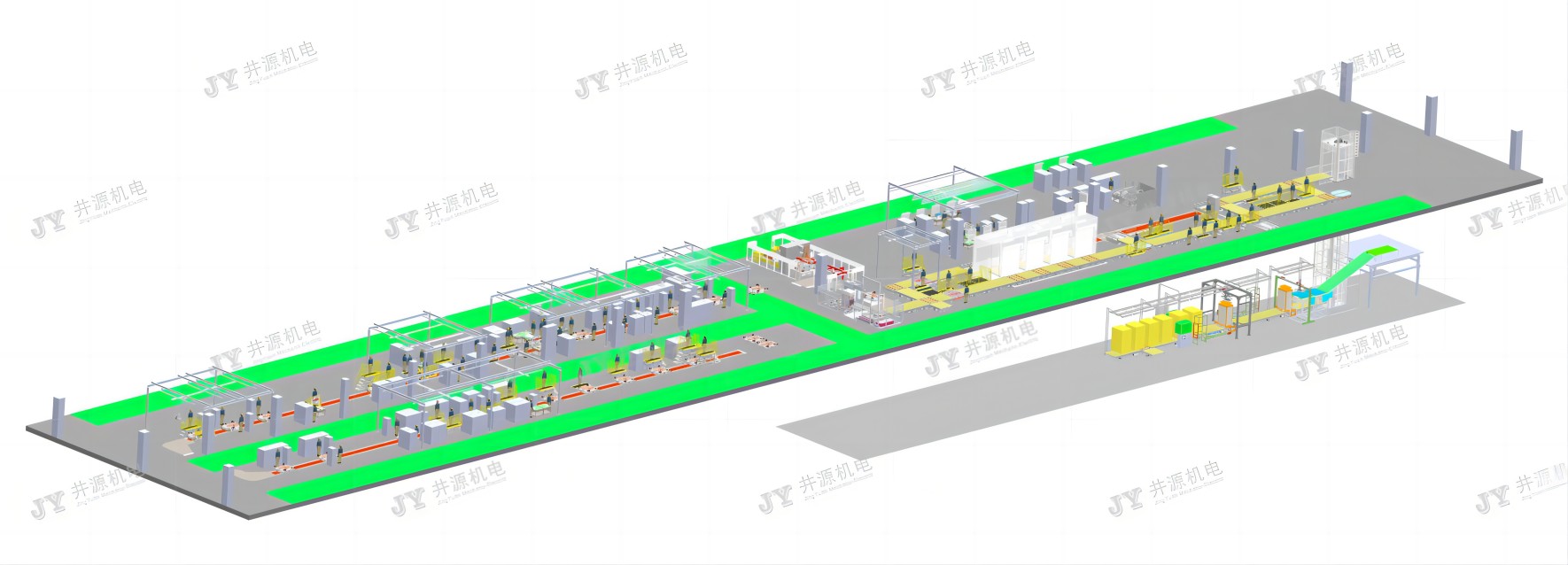 本次项目,商用干衣机智能总装产线主要运用于多型号干衣机智能化装配生产工作,计划以智能AGV为动力驱动,完成不同型号干衣机的柔性化、信息化、智能化生产,实现总装、检测、清洗、包运等生产工艺的自动化运输工作。装配线包含有:总装装配、检测、清洗、包运、智能平衡吊、简易便捷模块预装线、检测设备、助力设备、工装器具、AGV装配设备等。