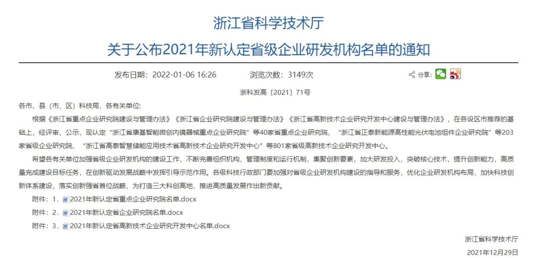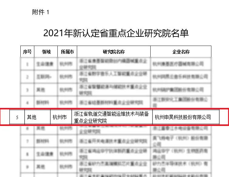 1月6日,浙江省科技厅发布《关于公布2021年新认定省级企业研发机构名单的通知》(浙科发高〔2021〕71号),申昊科技“浙江省轨道交通智能运维技术与装备重点企业研究院” 获得批准认定。