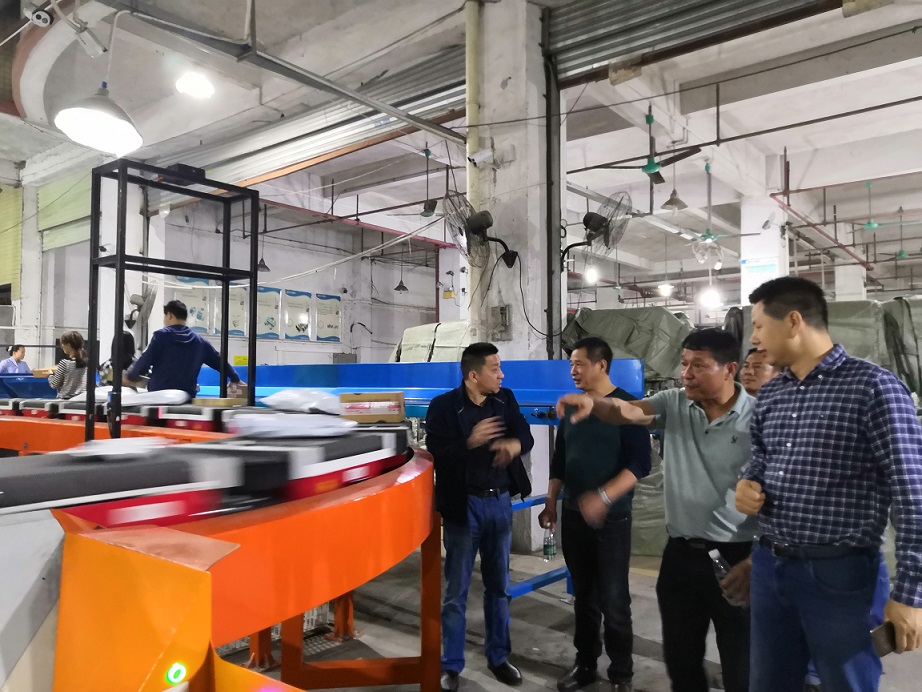 广州市番禺区大石镇百世快递总经理一行考察花都狮岭自动化分拣设备,现场确认采用三维通自动化分拣方案
