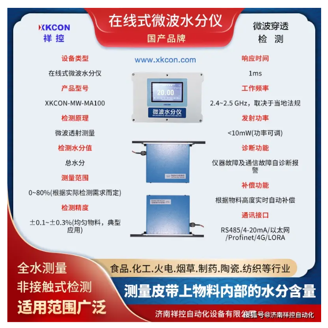 在生产过程中氢氧化铝水分含量是衡量产品质量的一个重要指标,氢氧化铝水分测定仪XKCON-MW-MA100作为一款在线式微波水分仪,能够为氢氧化铝生产提供精准的数据支持,在塑料、橡胶、陶瓷、造纸、医药制剂等行业中应用广泛。