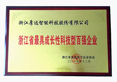 厚达智能获评第二届浙江省最具成长性科技型百强企业